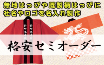 完全オリジナルのフルオーダー半被、無地はっぴへの名入れや既製品は大ロットでの御注文がお得です。 特に一枚ではコストが割高になりがちな本格染めをご希望の場合でも、制作枚数が多ければ格段にお安くご提供することが可能でございます。